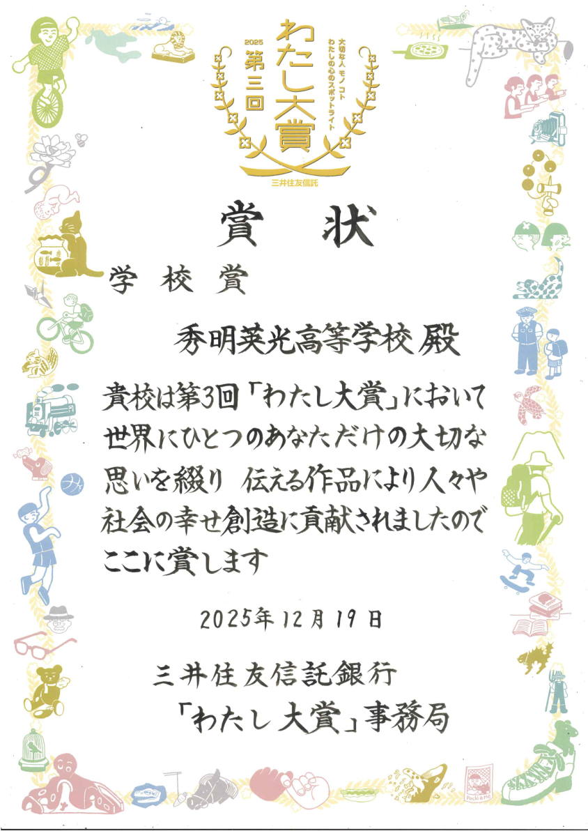 「わたし大賞」で学校賞受賞、朝日新聞に掲載