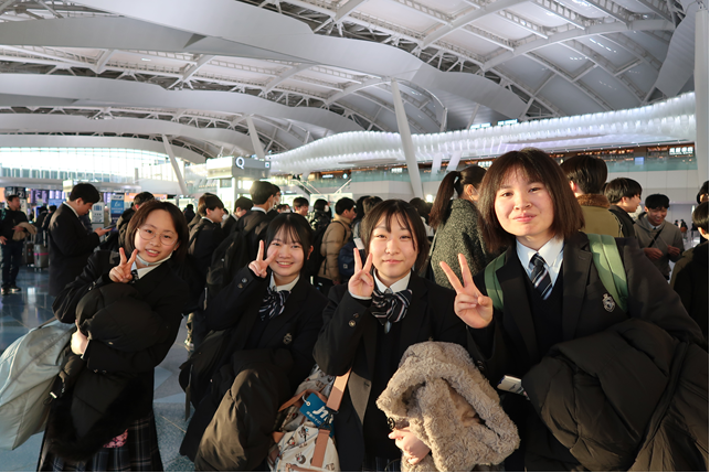 1月28日(水)、イギリス英語研修Ⅱ団106名が出発しました。20日(火)に結団式を行い、21日(水)~27日(火)までインフルエンザ等の予防を兼ねた自宅学習期間でしたが、全生徒が無事に出国しました。翌日には現地に到着したと報告が届いています。研修期間は3週間の予定です。