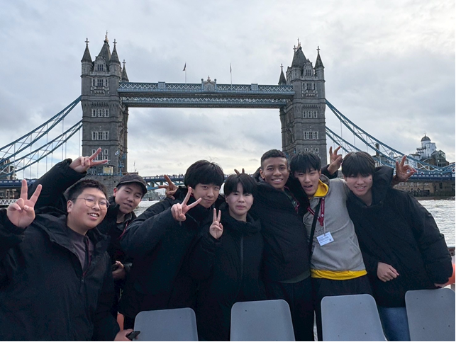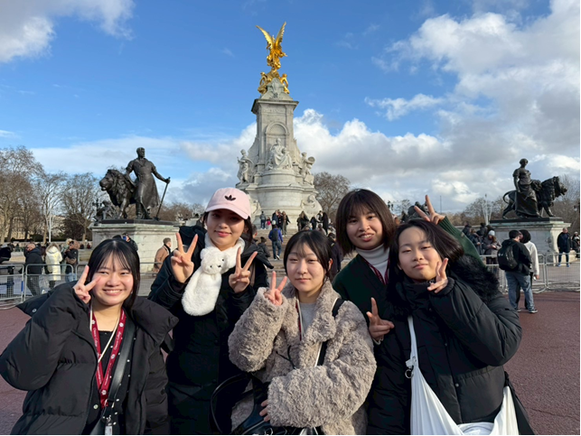 週末には小旅行としてロンドン観光を満喫しました。テムズ川クルージングでは、「タワーブリッジ」や「ロンドン・アイ」を背景に歓声を上げながら、仲間同士で写真を撮り合う姿が見られました。クルージング後はビッグベンやバッキンガム宮殿周辺を散策し、その後の自由行動では思い思いにロンドンの街を楽しんでいました。