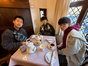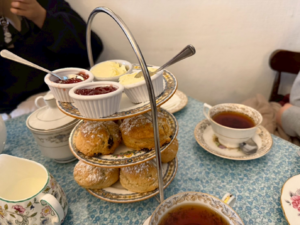 希望者を対象にクリームティー体験を行いました。伝統ある店舗で年代物の茶器を使い、優雅に紅茶を味わうことができました。
